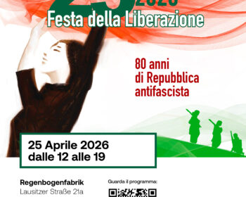 Il 25 aprile è la giornata nazionale della liberazione dal nazifascismo in Italia (1945). Quest’anno è particolarmente importante per noi perchè ricorre l’80º anniversario della liberazione. Per celebrare insieme questa importante ricorrenza la sezione ANPI Francoforte vi aspetta per un momento conviviale, con buffet di autofinanziamento e musica, sabato 26 aprile, dalle 12:00 alle 17:00, alla Netzwerk Seilerei (Offenbacher Landstraße 190, Frankfurt – Halle 3).